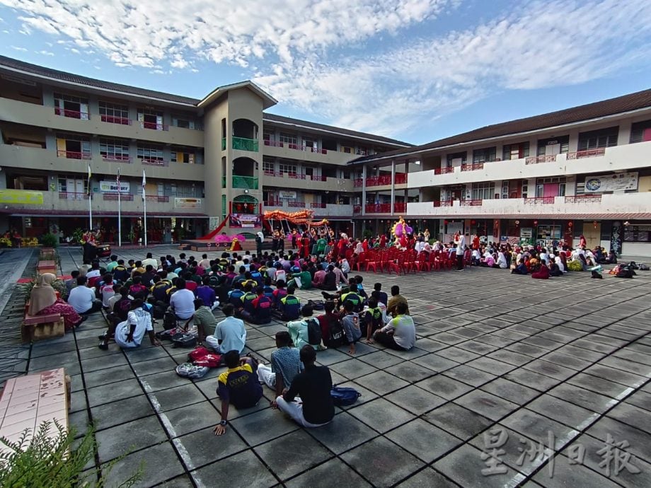 (怡保29日讯)国中农历新年庆典获得华文独中跨校支援,通过这项跨族、跨文化交流,使校园内10个种族在迎接龙年来临时,观赏到祥龙献瑞演出!