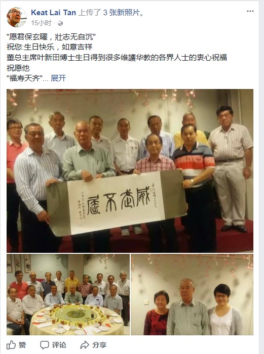 董总主席叶新田博士生日得到很多维护华教的各界人士的衷心祝福!